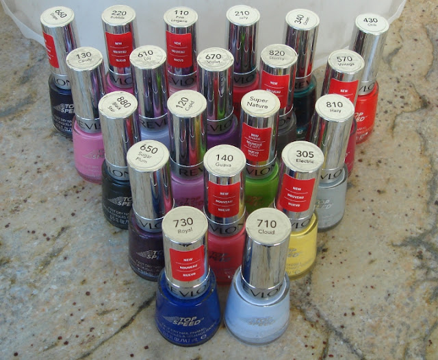 Today's lazy weekend post will consist of my most recent haul. These Revlon Top Speeds were polishes I got on Saturday from Walgreens' special one day sale. Tons of couponing and sales resulted in each polish being only ~45 cents! Yeah, you read that right... Here are some bigger than normal pics for your viewing pleasure.